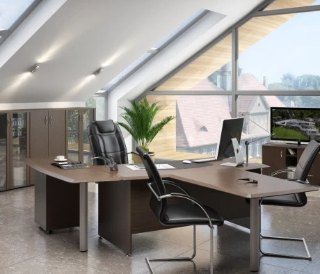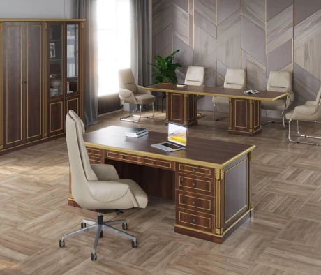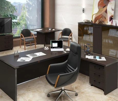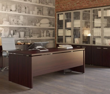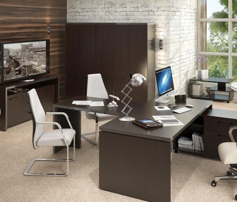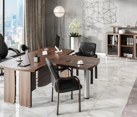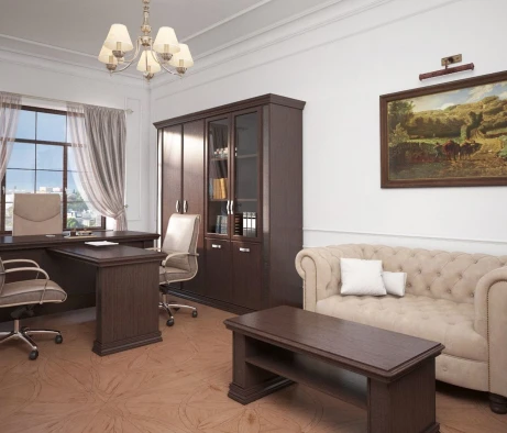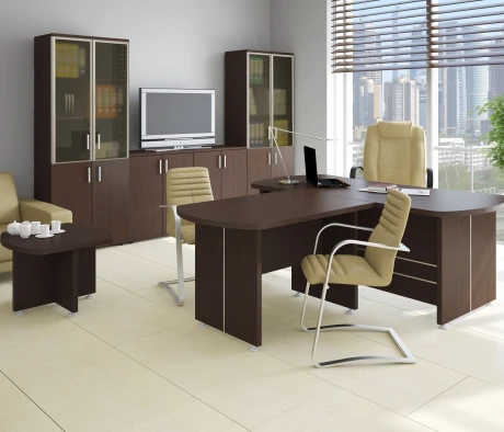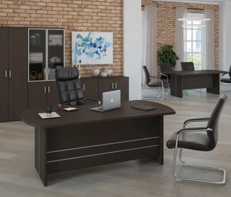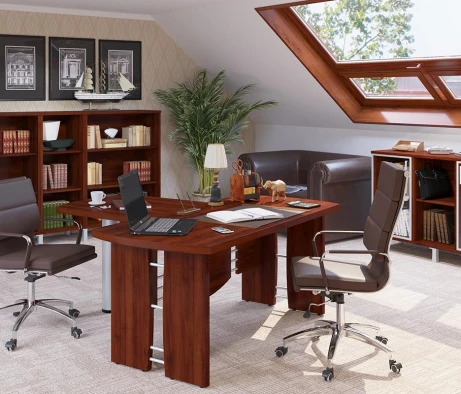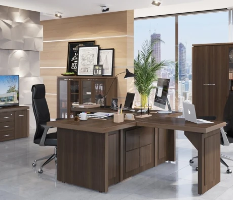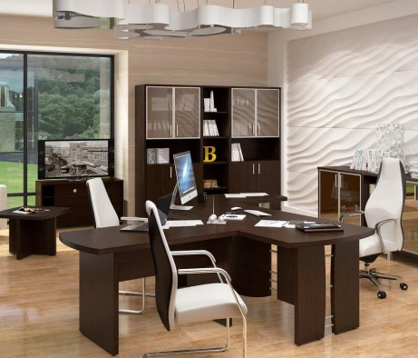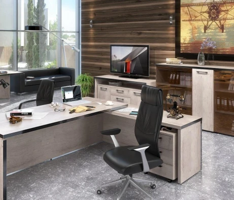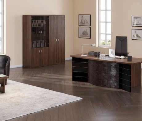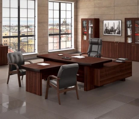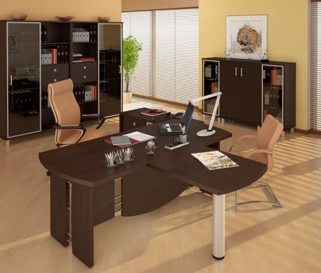 Остановился на этом варианте кабинета руководителя, долго думал какой взять. Наконец то дождались доставку, она была действительно долгой, но ничего, быстро собрали мебель зато. Прежде всего понравилось как мебель гармонирует с интерьером, как будто всю жизнь здесь стояла. Определенно это плюс, к качеству вопросов нет, отечественное производство на высшем уровне, спасибо!