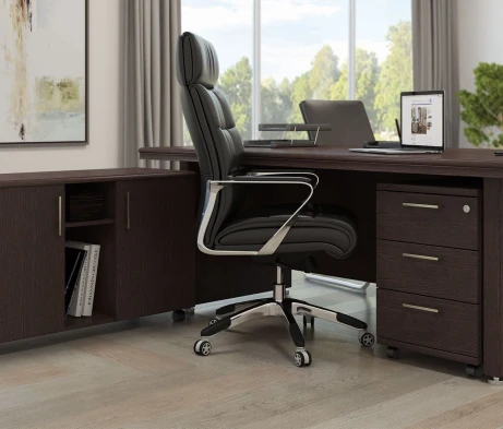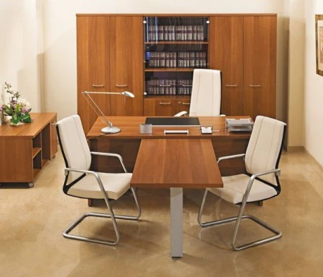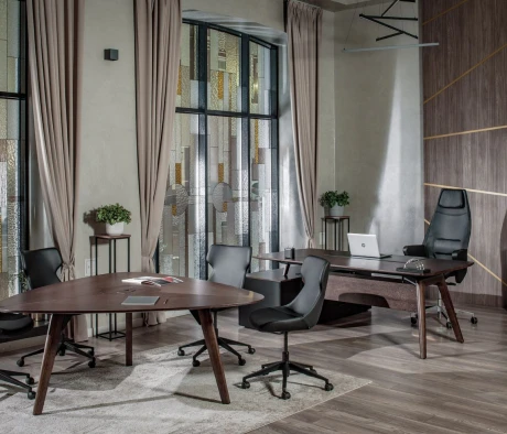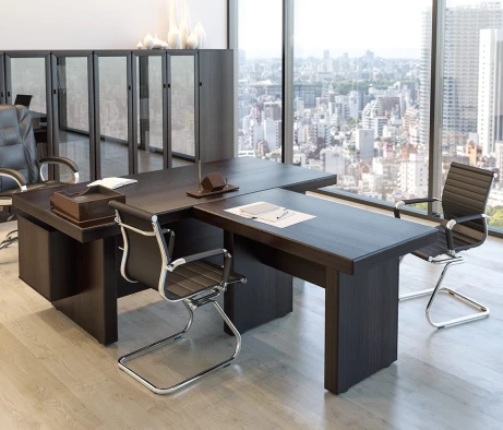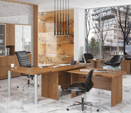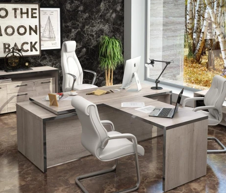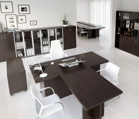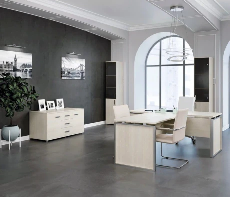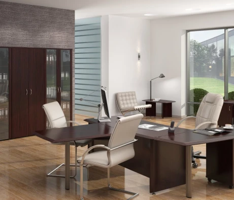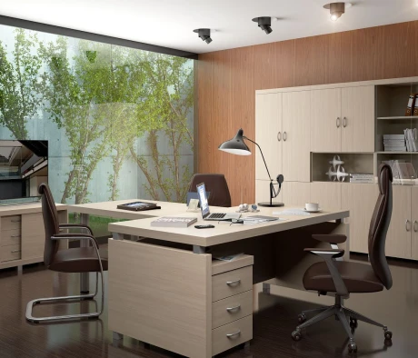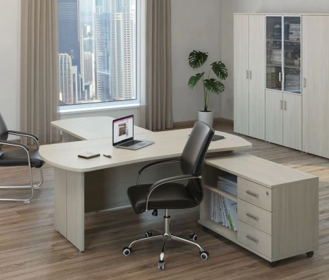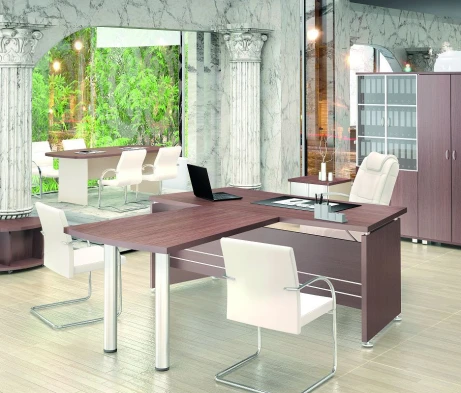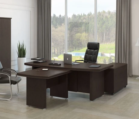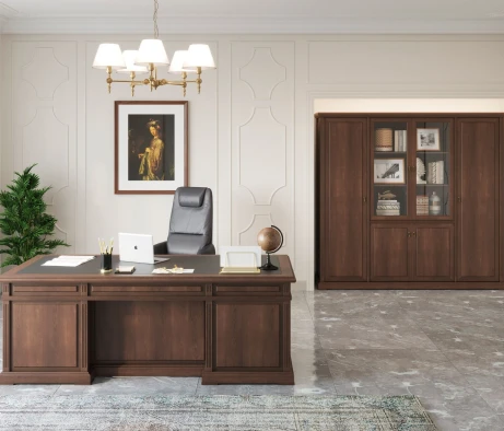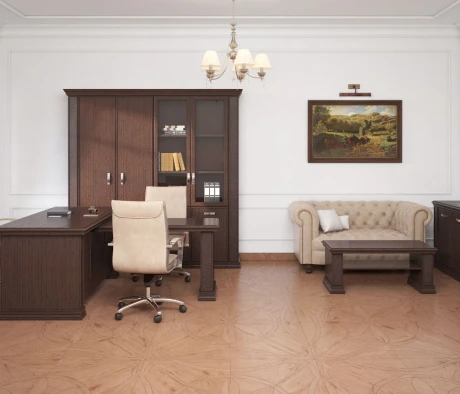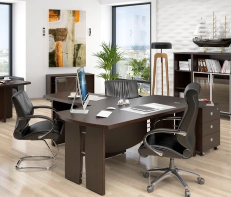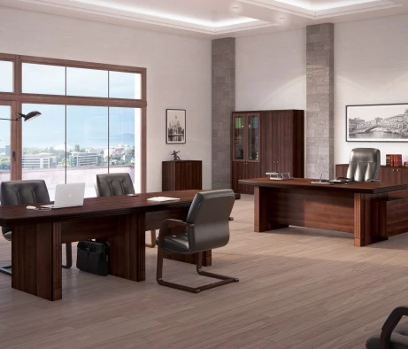 Остановился на этом варианте кабинета руководителя, долго думал какой взять. Наконец то дождались доставку, она была действительно долгой, но ничего, быстро собрали мебель зато. Прежде всего понравилось как мебель гармонирует с интерьером, как будто всю жизнь здесь стояла. Определенно это плюс, к качеству вопросов нет, отечественное производство на высшем уровне, спасибо!