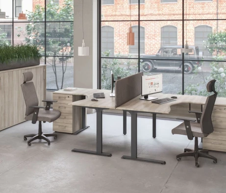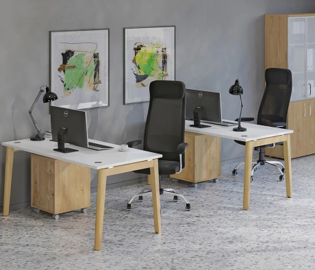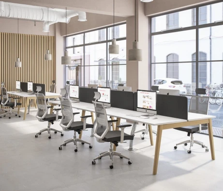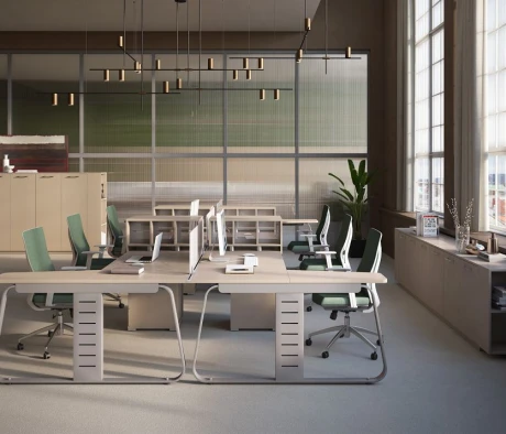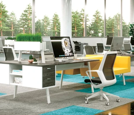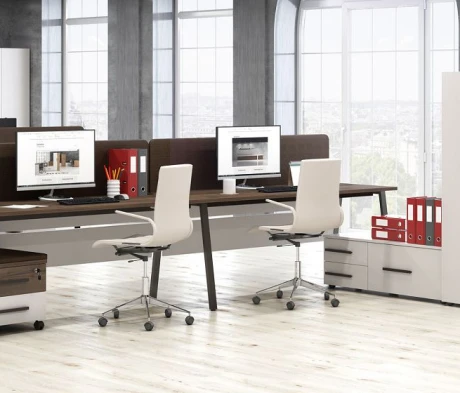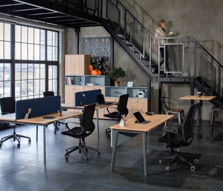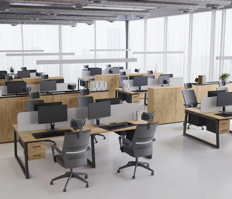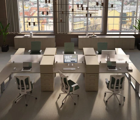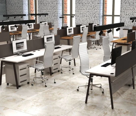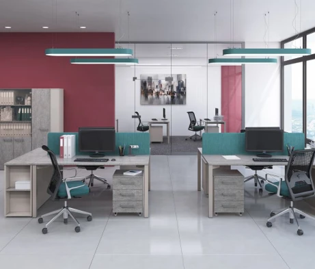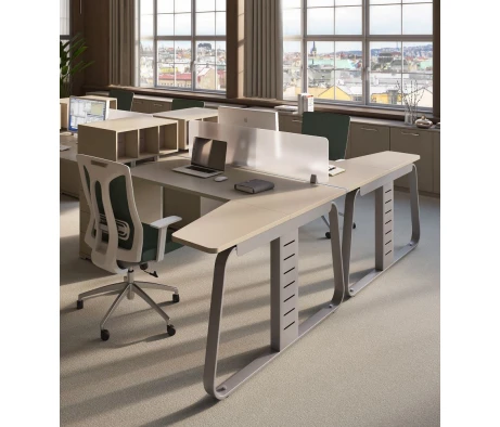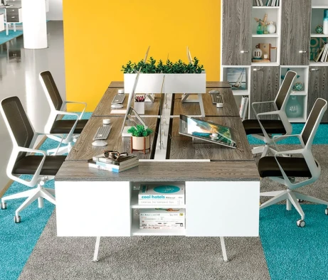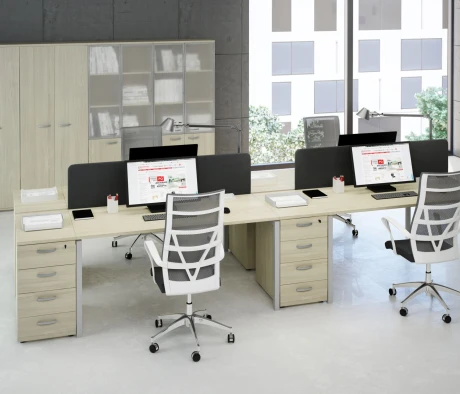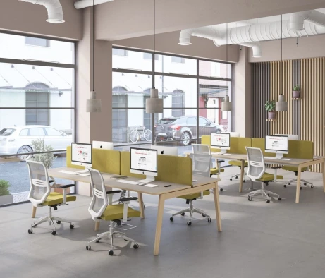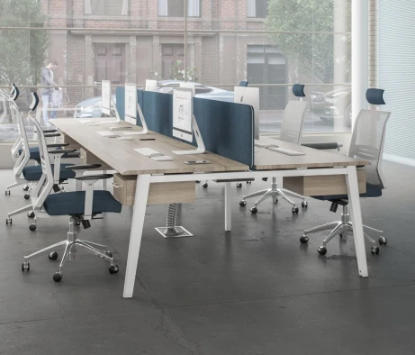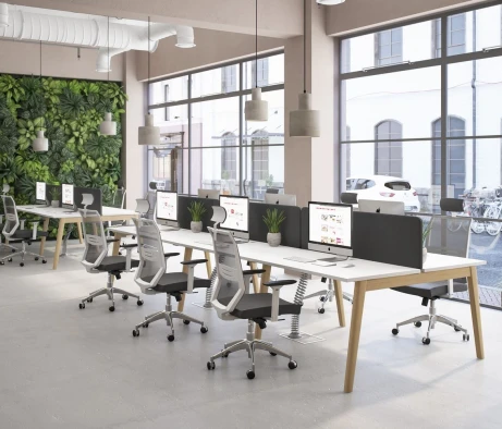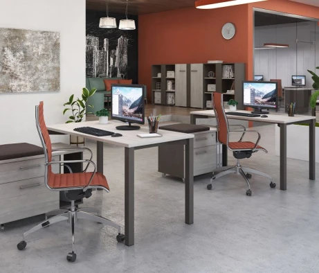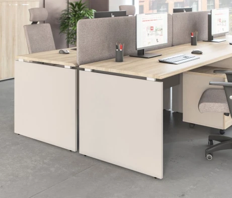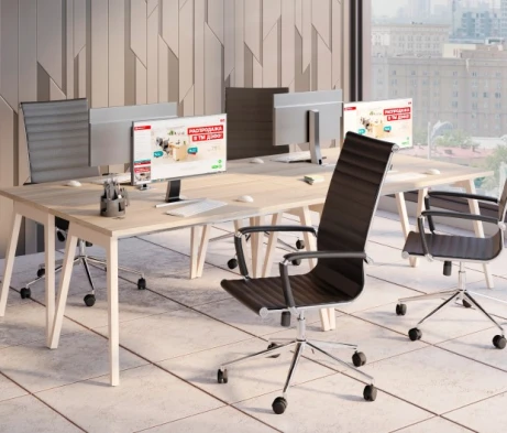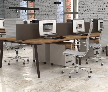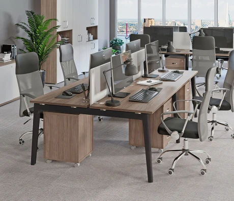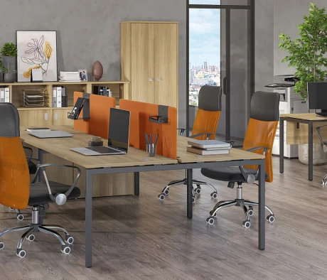 Я в своём офисе уже давно использую бенч-системы, отдельные столы это прошлый век. Мне это кажется очень стильным и это здорово экономит пространство. В офисе все смотрится модно, прогрессивно, как мне нравится.