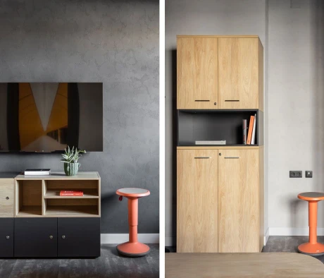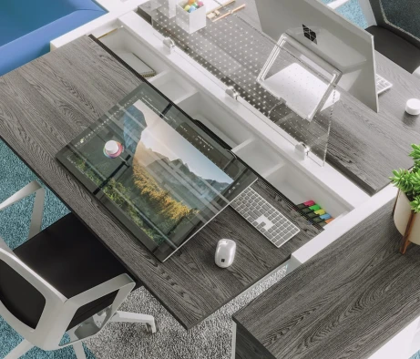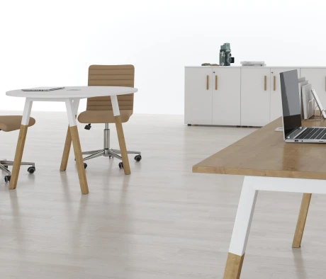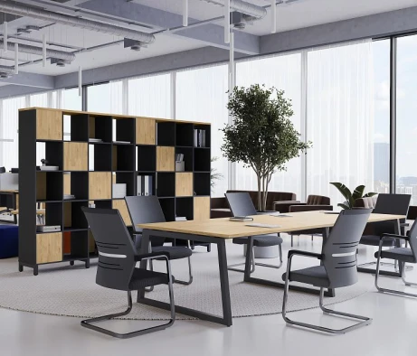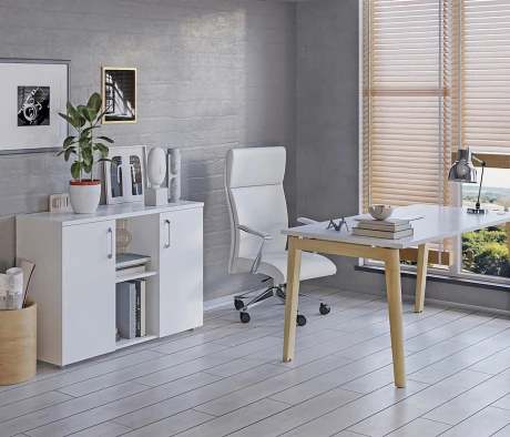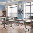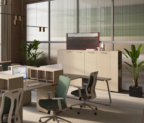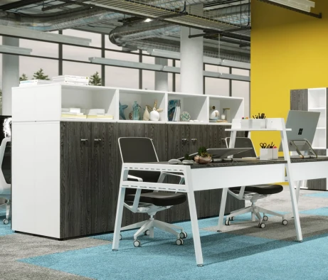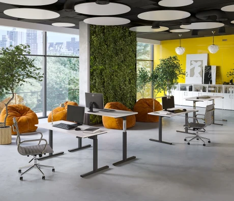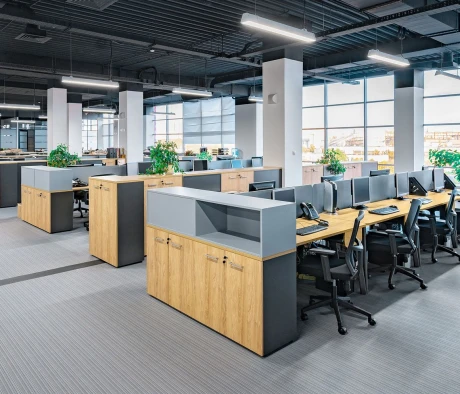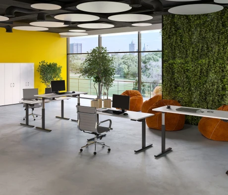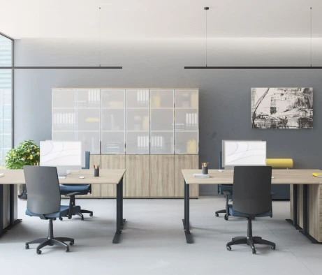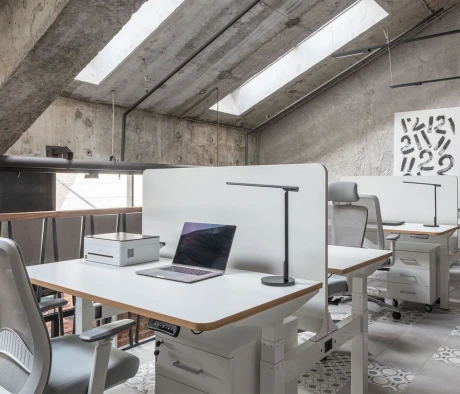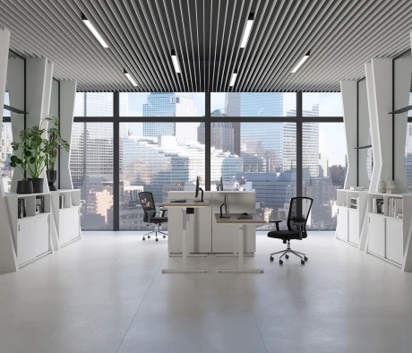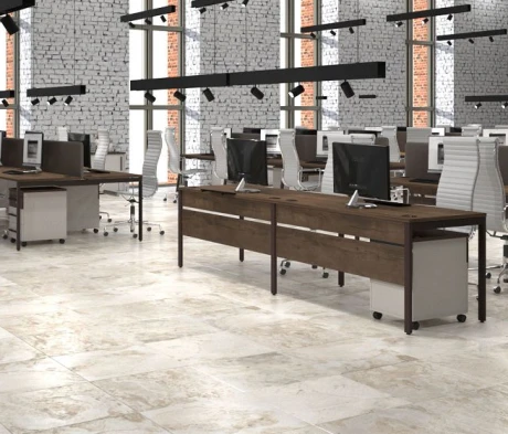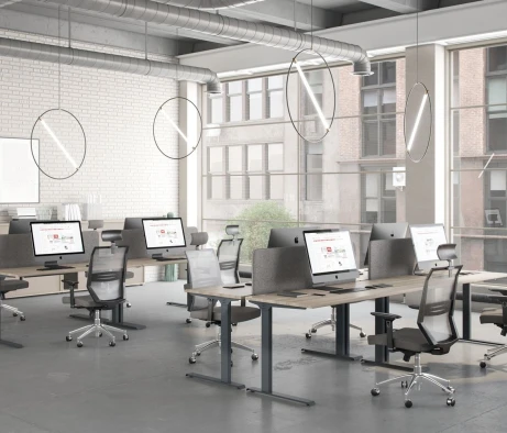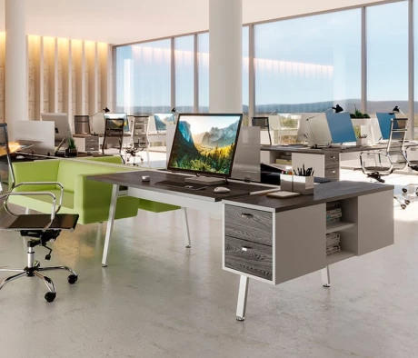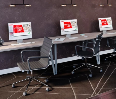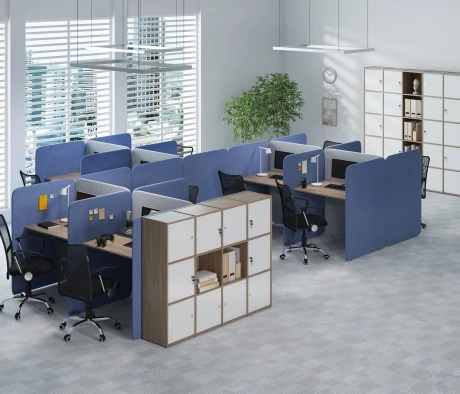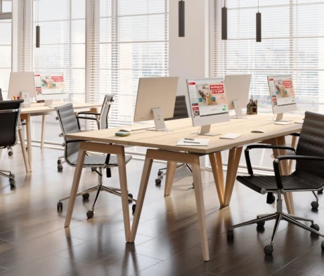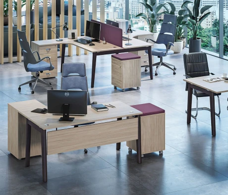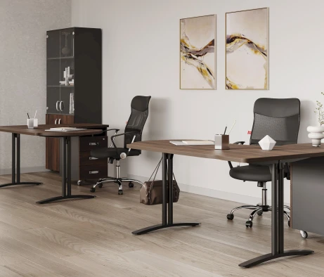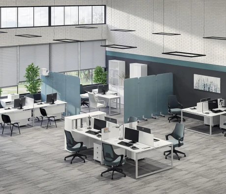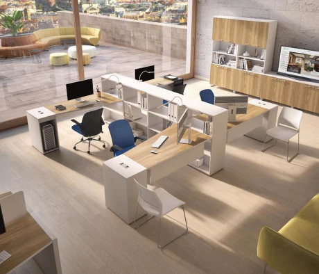 Я в своём офисе уже давно использую бенч-системы, отдельные столы это прошлый век. Мне это кажется очень стильным и это здорово экономит пространство. В офисе все смотрится модно, прогрессивно, как мне нравится.
