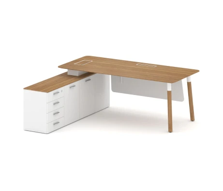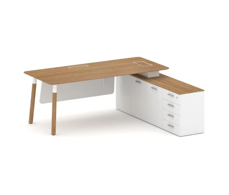 Стол руководителя на 2-х опорных тумбах (левый) 180х180x73,5 Норман / Norman