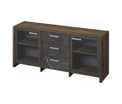 Для создания уютной и продуктивной атмосферы в офисе мы выбрали мебель серии FESTUS и CORNER. Эти коллекции обладают современным дизайном, а темная отделка с вставками под черный мрамор придают им элегантный вид. Для комнаты переговоров были установлены конференц-кресла САМБА на хромированных основаниях, что дополнило интерьер и обеспечило комфорт при ведении переговоров.
