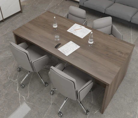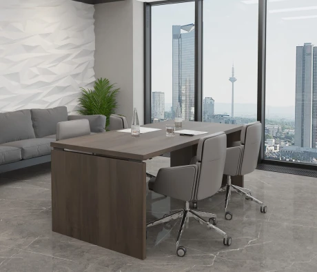 Клиент имел средний бюджет и требовал строгий и современный стиль офисной мебели. Мы также должны были учесть, что в зоне переговоров необходимы удобные конференц-кресла, а также сделать акцент на естественном свете, который проникает в помещение через большие панорамные окна.